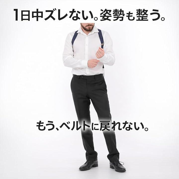 「姿勢改善」通常のX型やY型のサスペンダーとは異なり、肩だけでなく上半身全体で支えてくれます。