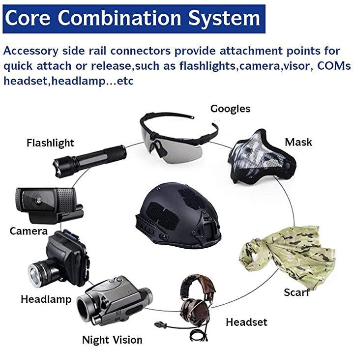 *マジックテープ、マウントベース、サイドレイルが付いていますので、ワッペン、カメラ、ヘッドセット、ゴーグル、マスク、ライト等を取り付けることができます。