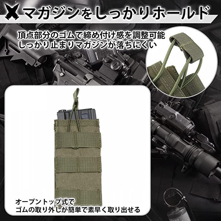・「オープントップ」オープントップはマガジンを素早く取り出せる事が出来、また頂点のゴムで締め具合を調節出来るのでしっかり止まりマガジンが落ちにくいので安心してサバゲーを楽しめます。
