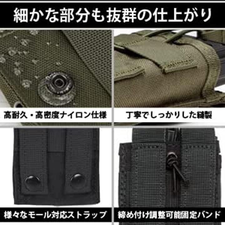 ・「MOLLE対応」背面にモールシステムを採用しておりプレートキャリア、チェストリグなどに取り付け可能。