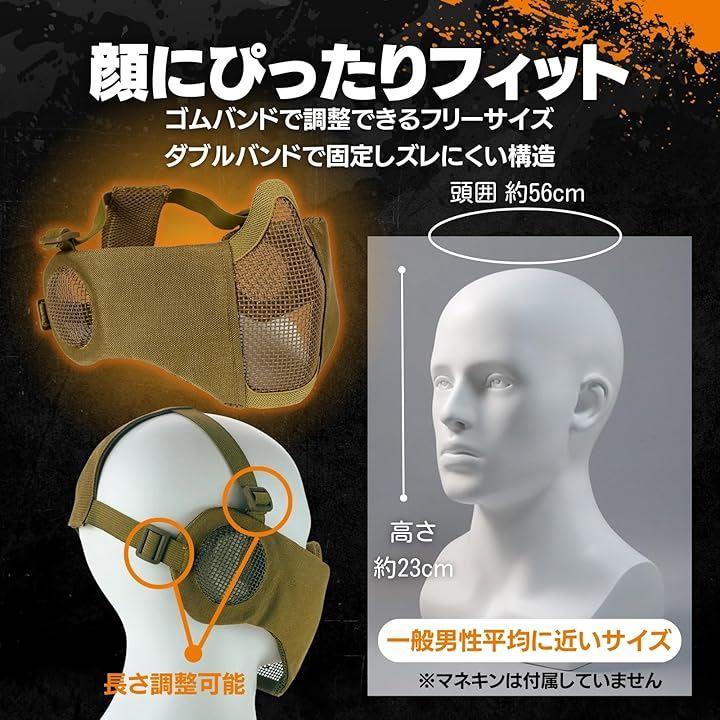 「耳の部分」まで広く保護されたハーフメッシュマスク