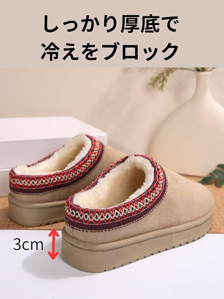 「サイズ選びの目安」ボアがしっかり入っているため、靴下の厚さも考慮すると、通常より0.5~1cm上のサイズをお勧めいたします。