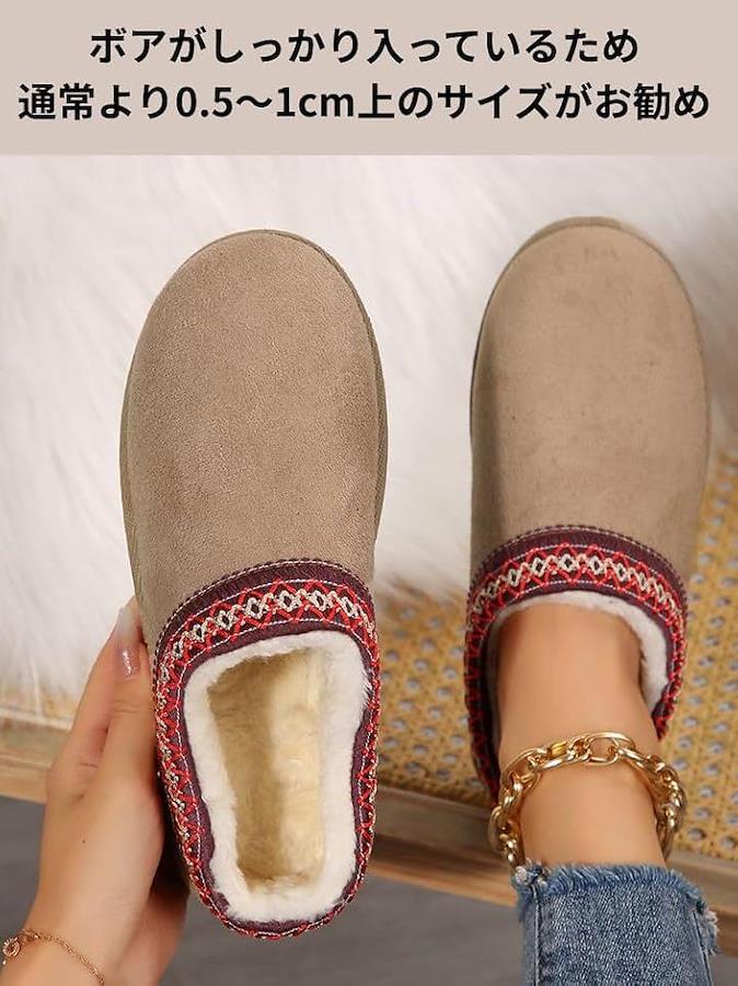 「サイズ選びの目安」ボアがしっかり入っているため、靴下の厚さも考慮すると、通常より0.5~1cm上のサイズをお勧めいたします。