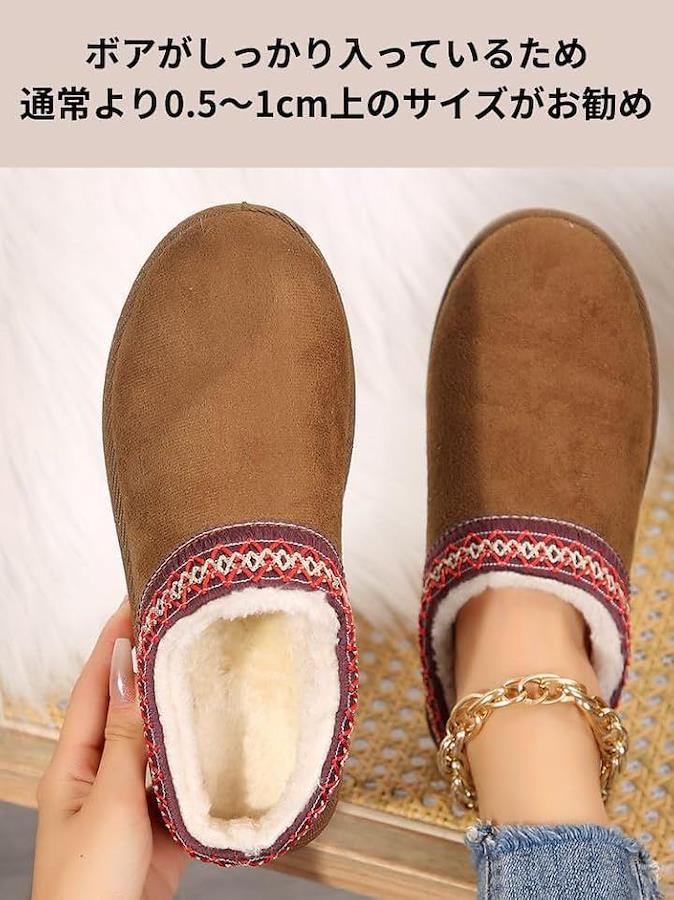 「サイズ選びの目安」ボアがしっかり入っているため、靴下の厚さも考慮すると、通常より0.5~1cm上のサイズをお勧めいたします。