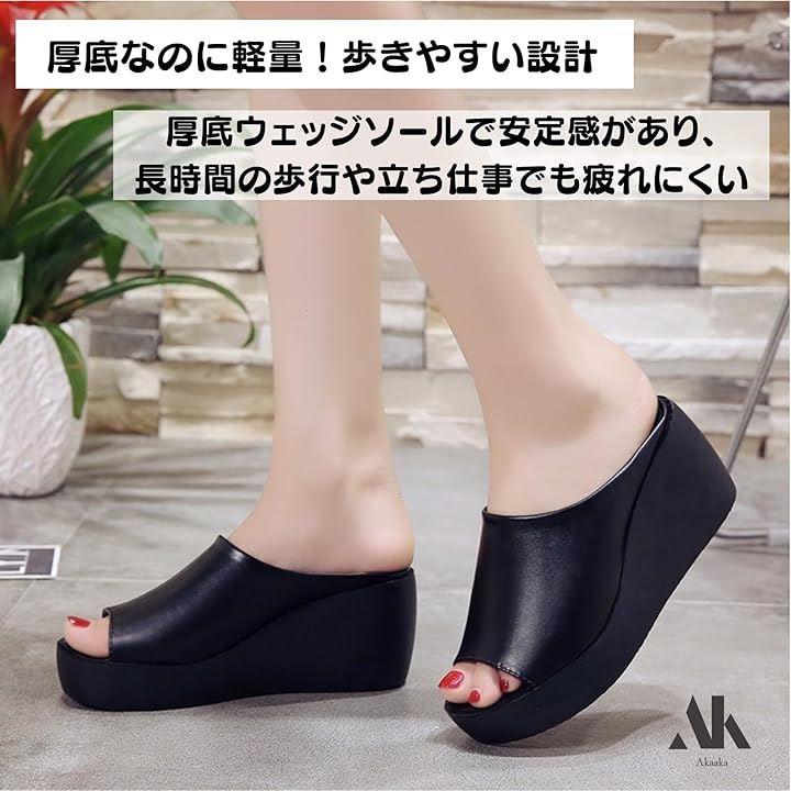 「安定感ある履き心地」厚底ウェッジソールで安定感があり、長時間の歩行や立ち仕事でも疲れにくいです。