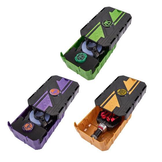 『仮面ライダーギーツ』より、劇中に登場するサポーターたちがそれぞれの「推し」仮面ライダーをサポートする際に使用するサポートミッションボックスを発売いたします。 セットにはミッションボックスが3種含まれ、仮面ライダータイクーンイメージの「サポートミッションボックスタイプタイクーン」、仮面ライダーバッファイメージの「サポートミッションボックスタイプバッファ」、仮面ライダーナーゴイメージの「サポートミッションボックスタイプナーゴ」のラインナップとなっています。 それぞれ別売りの「DXデザイアドライバー」や、各種レイズバックルが収納可能です。「DXデザイアドライバー」と大型レイズバックルは1つ、小型レイズバックルは最大5つまで収納できます。また、ウレタン収納パーツによりコアIDをセットすることも可能です。 またデザイアロワイヤル招待状と、デザイアカード(ブランク)も付属し、なりきり遊びの幅がより広がります。 ※「DXデザイアドライバー」、大型レイズバックルは他各種レイズバックルと同時には収納できません。 ※「DXブーストマークIIレイズバックル」、「DXブーストマークIXレイズバックル」、「DXブジンソードバックル」は本商品に収納できません。