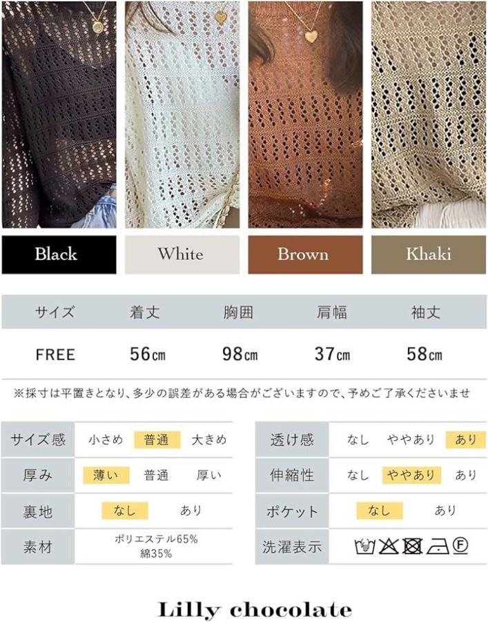 軽やかで通気性の良い透かし編みデザインが、春夏シーズンにぴったりです。