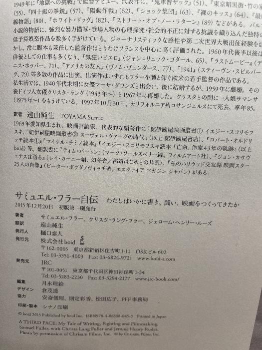 a04-251215002011015-000サミュエル・フラー自伝 ‾わたしはいかに書き、闘い、映画をつくってきたか‾ boid サミュエル・フラージャン゠リュック・ゴダール、ヴィム・ヴェンダース、ジム・ジャームッシュ、アキ・カウリスマキなど、世界中の多くの監督たちに慕われたサミュエル・フラー。 「アクション映画」「犯罪映画」「戦争映画」「西部劇」といったジャンルのルールを踏襲しつつ、しかし「サミュエル・フラー」としか言い得ない確固たる独自のジャンルを作り上げた彼の、背景と源はどこにあったのか? 犯罪事件記者でもあった彼の歴史は、そのままアメリカの歴史の光と闇とを浮かび上がらせる。ハリウッドの背景に広がるアメリカという夢の王国の持つ深い陰影からこぼれ出た物語が1冊の書物となったのだ。これはひとりの映画監督の自伝であるとともに、20世紀という映画の時代の物語でもある。 「史上もっとも過激なアクション映画と、もっとも前衛的な西部劇と、 もっとも偉大な戦争映画を撮ったサミュエル・フラー。 悔しいが、この男こそ映画そのものだと認めよう。 ・・・・・・黒沢清(映画監督)」9784865380453<%% SHIPPING %%>表紙にヨレ、スレ、傷み、天地小口に多少のスレ、があります。本は良好です。※注意事項※■商品・状態はコンディションガイドラインに基づき、判断・出品されております。■付録等の付属品がある商品の場合、記載されていない物は『付属なし』とご理解下さい。※