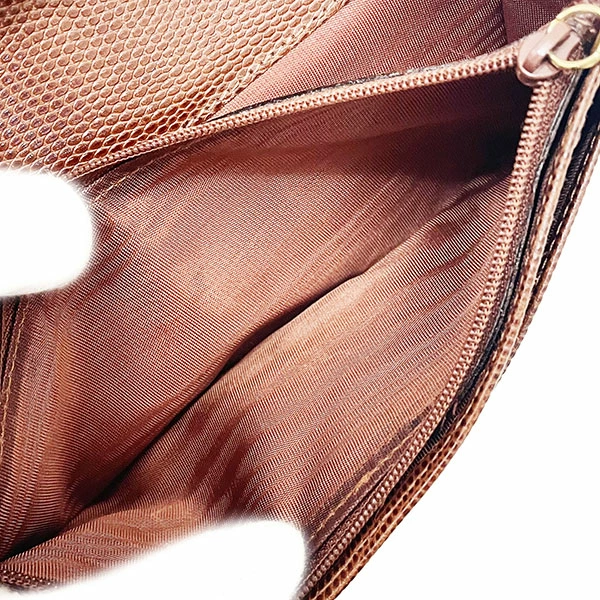 内側:カード跡・仕様上の跡が付き、所々に傷・擦れ・擦り減り・色落ち・シワ・リボンの擦れ汚れ等が見られます。小銭入れ内は擦れ・上部周りにかなり黒ずみ汚れ等使用感がございます。