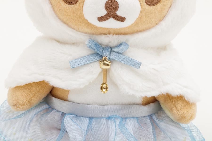 リラックマ「スワンと金色の花」テーマより、バレエ風のスカートがかわいいスワンのぬいぐるみができました。ラインストーンの金色の花がポイント。スプーン型マスコット付。