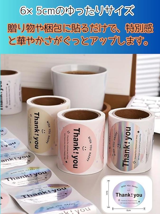 6x5cmの大きめサイズで、ラッピングにしっかりと存在感を与えるサンキューシールです。