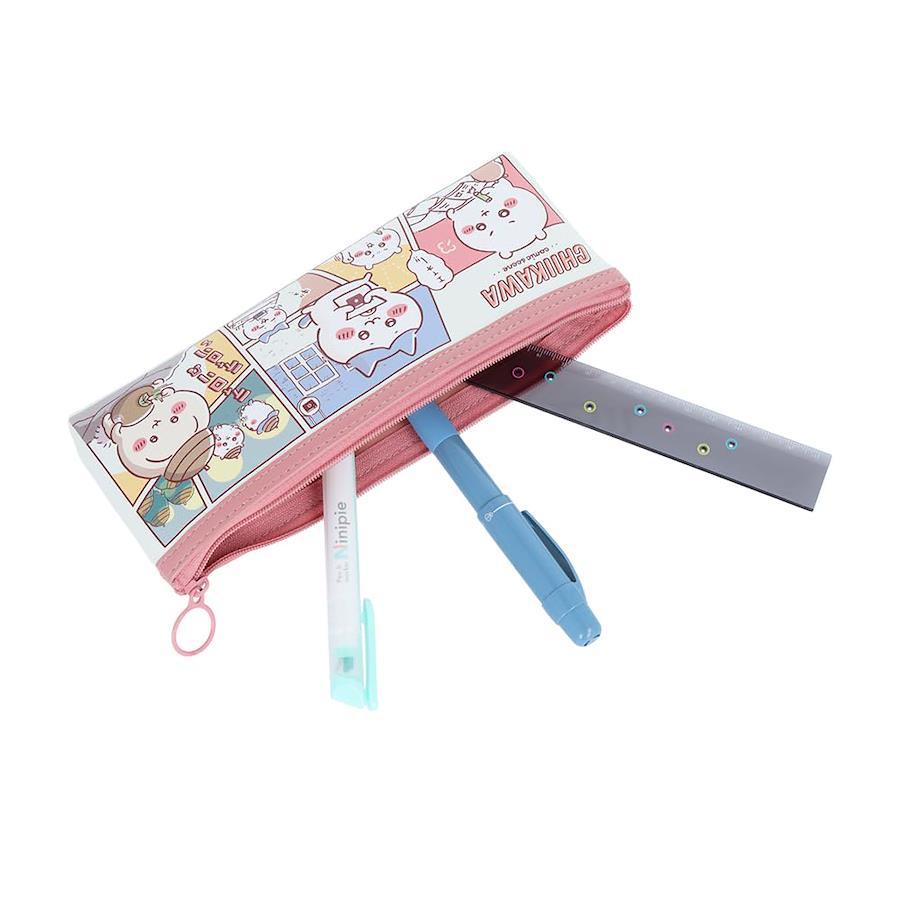 ちいかわコミック柄文具第10弾ペンケース持ち運びやすいスリムタイプの、[ペンケース]。 柄は、ちいかわ。 コミックA柄は、各キャラクターのストーリーを抜粋したコミックデザイン!オモテとウラで絵柄が違ってカワイイ![ちいかわ]トータルステーショナリー第10弾。 [コミックシーン]をテーマにした、ちいかわの漫画のコマやセリフ付のデザインシリーズです!今回はレトロな海外コミック風アレンジで、各キャラクターのストーリーを描いています。漫画内に登場するアイテムやシーンを文具に落とし込んだこだわりアイテムにもご注目!