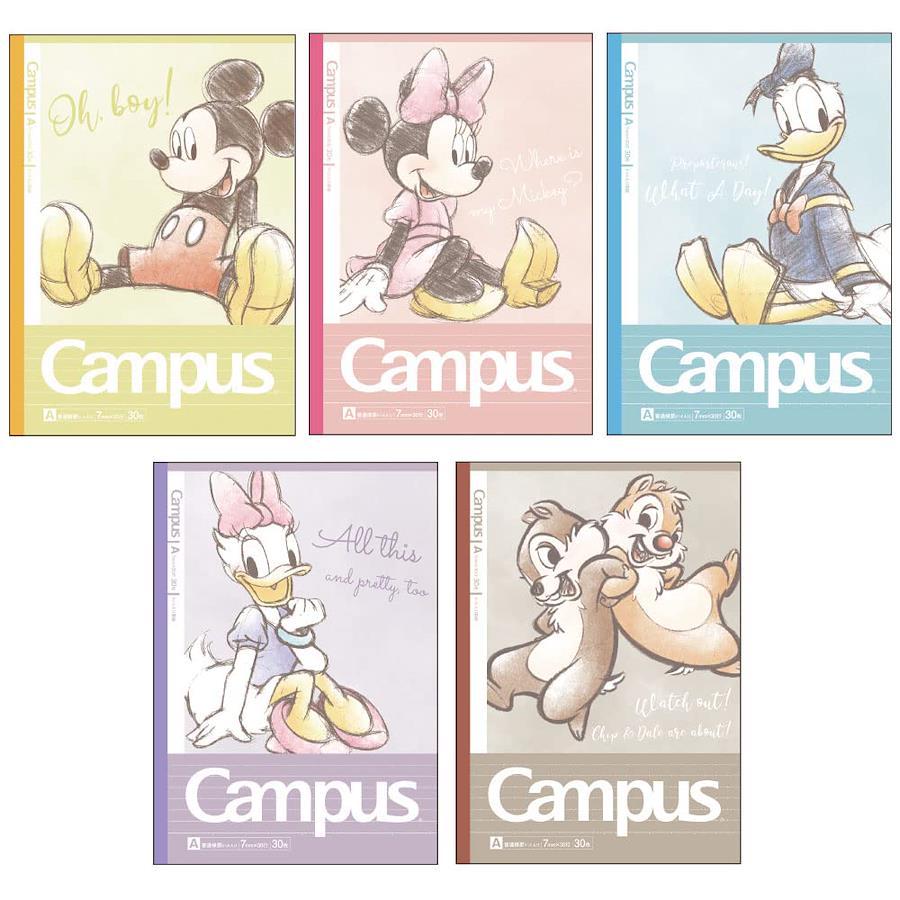 色名:スタンダード ディズニーキャラのノートパックキャンパスノートドットA罫5冊パック7mmごとに罫線が引かれている、「キャンパスノートドットA罫5冊パック」 柄は、ディズニースタンダード。5冊入りで、キャラクターは「ミッキーマウス」、「ミニーマウス」、「ドナルドダック」、「デイジーダック」、「チップとデール」。0
