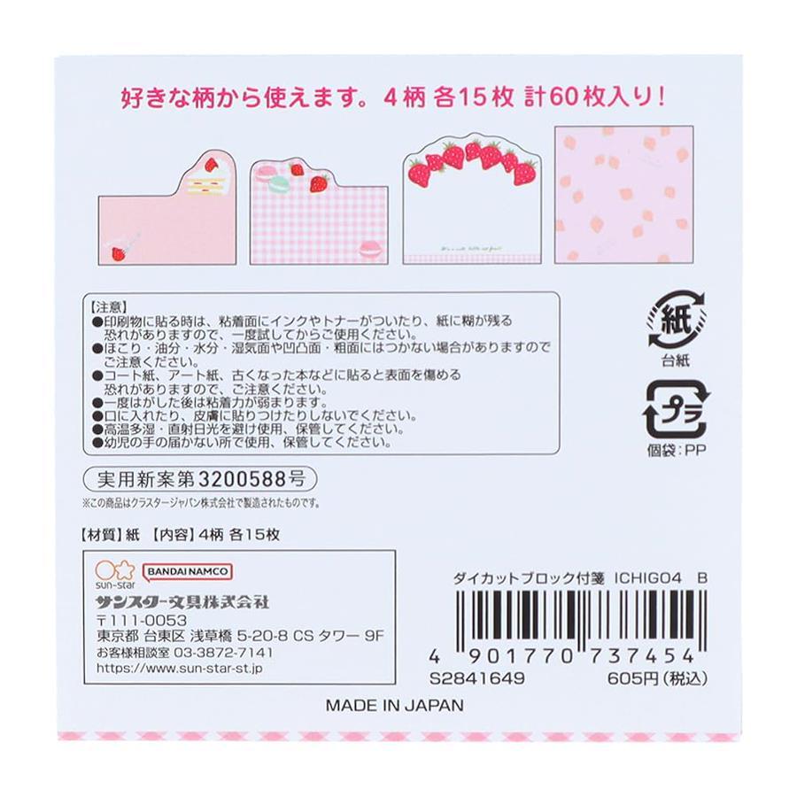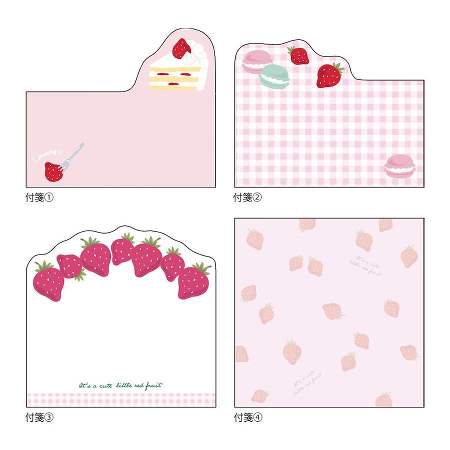 ギンガムチェック×イチゴダイカットブロック付箋 ICHIGO4ダイカットがかわいい、「ダイカットブロック付箋」。 ICHIGOシリーズのデザインは、B柄。好きな柄から選んで使える付箋です。食べたくなっちゃう、ジューシーイチゴ。ギンガムチェック+イチゴ=可愛い文具シリーズ。