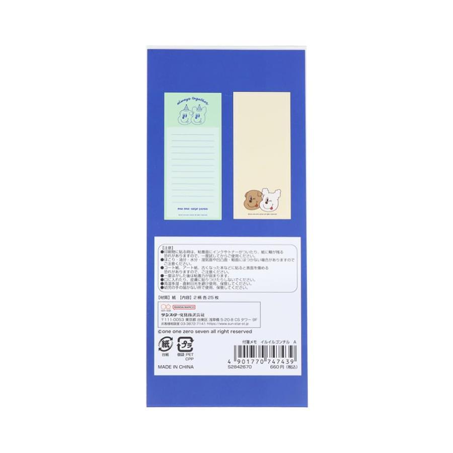 イルイルゴンチルの文具雑貨登場付箋メモジッパー袋入りのパッケージがおしゃれな、[付箋メモ]。 柄は、イルイルゴンチル。 デザインは、A柄。たっぷり書ける付箋2柄入り。[1107(イルイルゴンチル)]は、韓国人夫婦によって生まれたブランド。2人が大好きなイラストを一緒に描きはじめ、出来上がったキャラクターがこのブランドの始まりです。ブランド名の[1107]は、まさに夫婦が出逢った11月7日に由来しています。