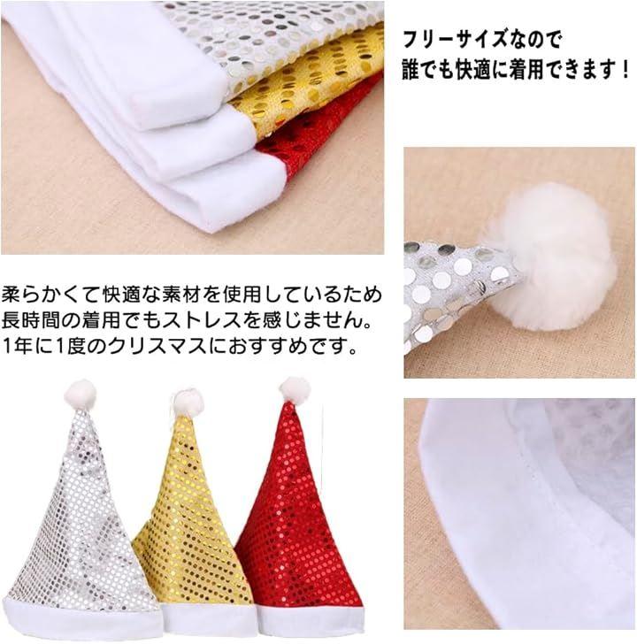 スパンコールがきらきらと輝くサンタ帽子は、クリスマスの雰囲気を一層盛り上げます。