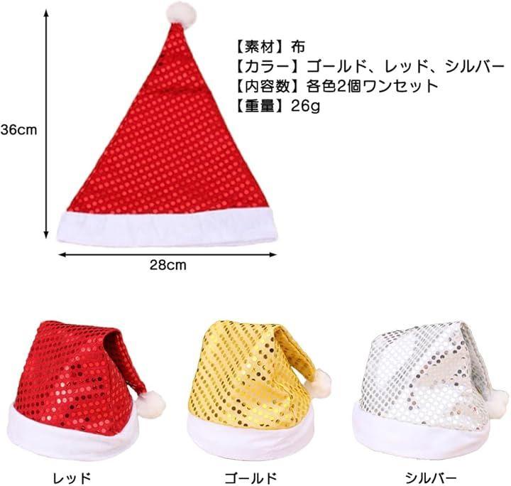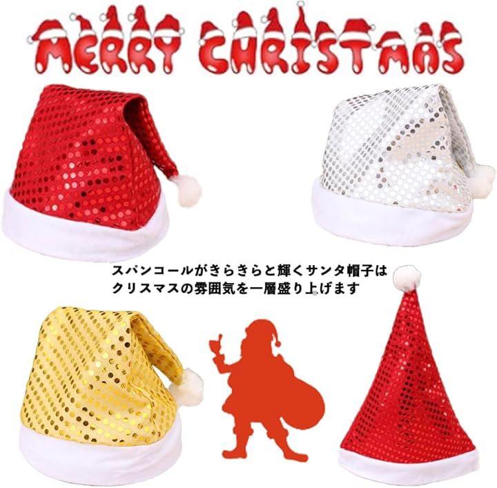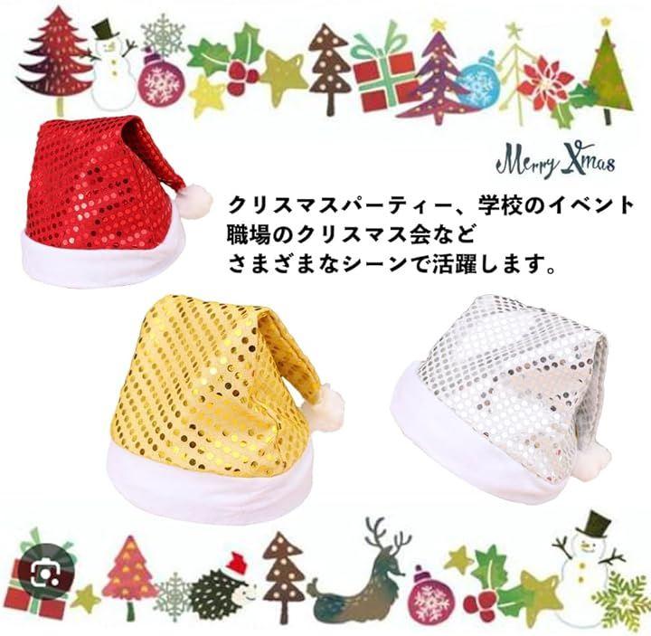 スパンコールがきらきらと輝くサンタ帽子は、クリスマスの雰囲気を一層盛り上げます。