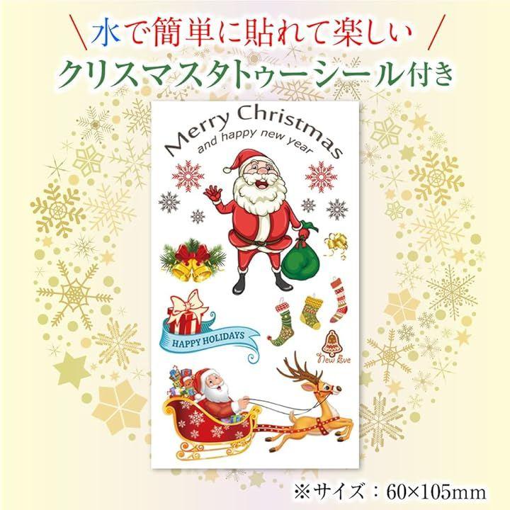 「タトゥーシールのおまけ付き」水で簡単に貼れて楽しめるクリスマス用タトゥーシールも付いています。