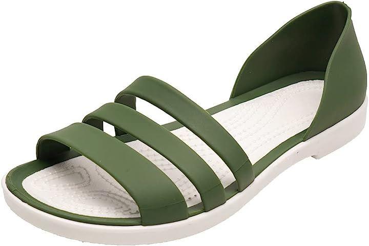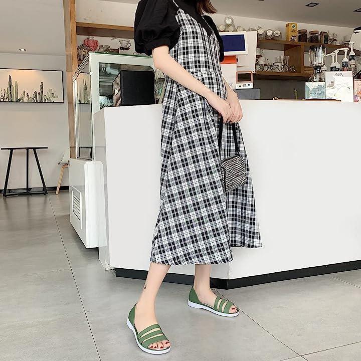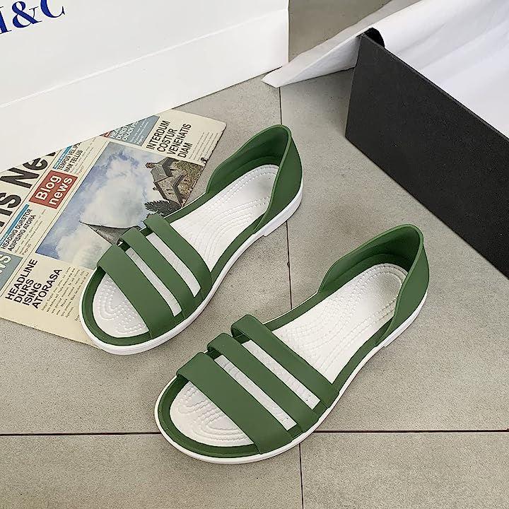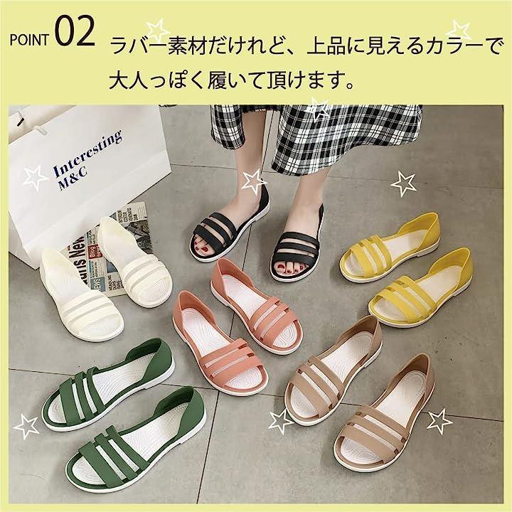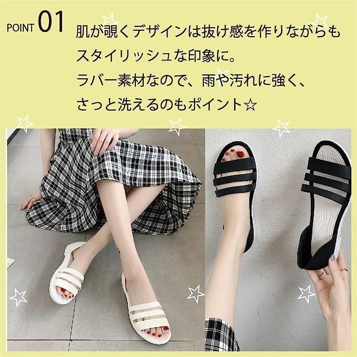 涼し気なラバー素材の3連サンダル。