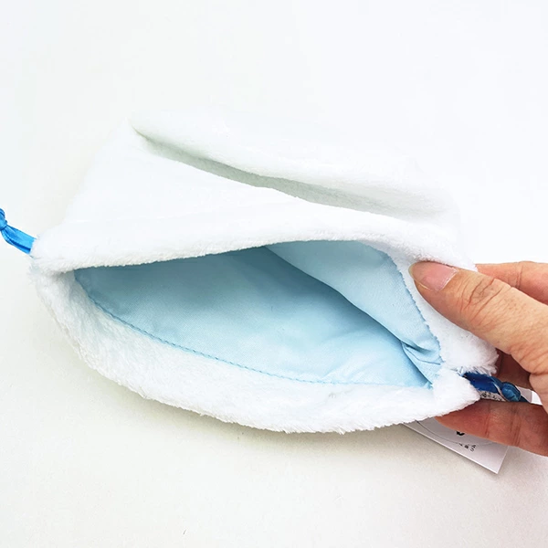クロミのふわふわ素材のフェイス巾着です。マチ付きなので小物の持ち運びにも便利☆愛らしい表情がとてもキュートな巾着です♪