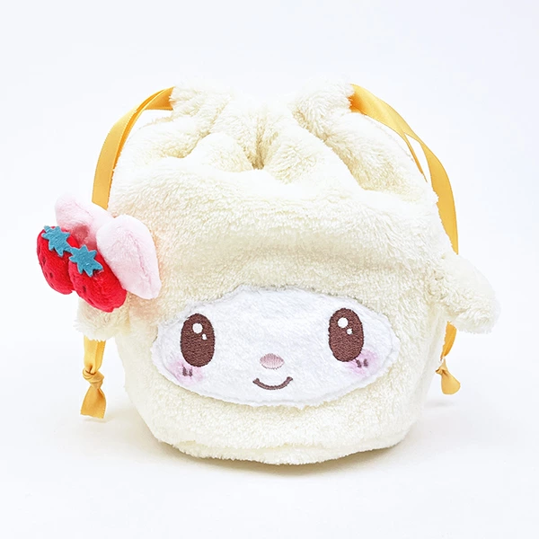 マイスウィートピアノのふわふわ素材のフェイス巾着です。マチ付きなので小物の持ち運びにも便利☆愛らしい表情がとてもキュートな巾着です♪