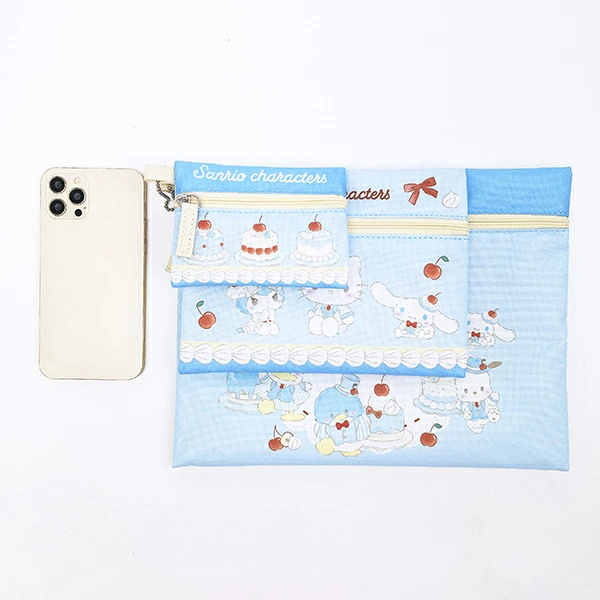 サンリオキャラクターズのかわいいアートがポイントの3連ポーチです。お手紙や通帳、カードなど、分けて収納できるのが便利♪細かいものを分けて収納できるのが嬉しいポイントです☆彡【サイズ】大:21cm×27cm、中:14cm×19cm、小:8cm×11cm