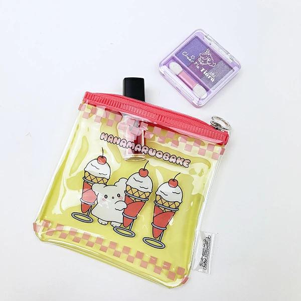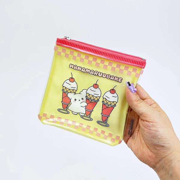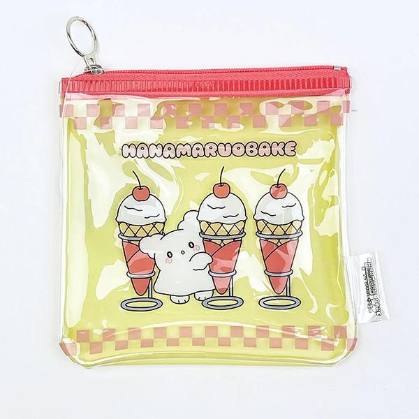 はなまるおばけの小物を収納するのにぴったりなフラットスクエアポーチです。表面は透明なので外から中身が確認しやすく使い勝手◎バッグの中に入れて置くだけでも可愛いです♪