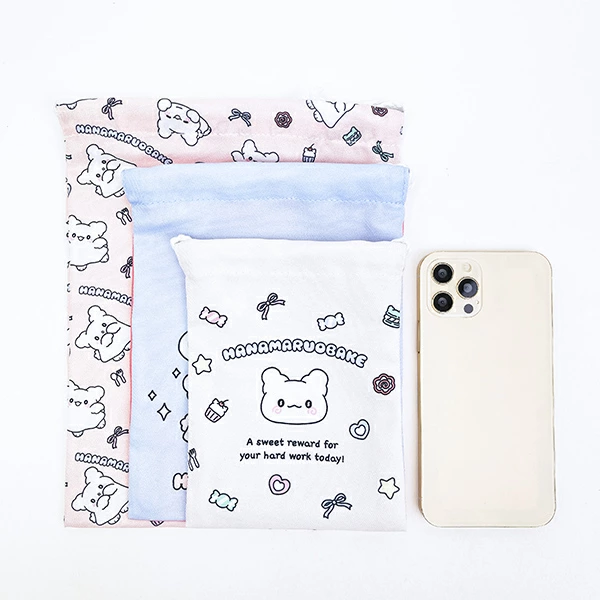 はなまるおばけの3P巾着です。用途に合わせて使い分けられて◎旅行時など便利に使っていただけます♪細かいものを分けて収納できるのが嬉しいポイントです☆彡【サイズ】大:23cm×18cm、中:19cm×15cm、小:15cm×12cm