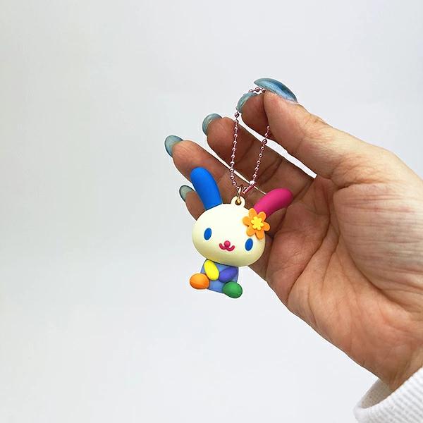 ウサハナのPVCマスコットです。PVCマスコットは小ぶりでバッグや鍵に付けても邪魔にならないサイズ感がgood♪ぜひ一緒にお出かけしてみてください☆彡
