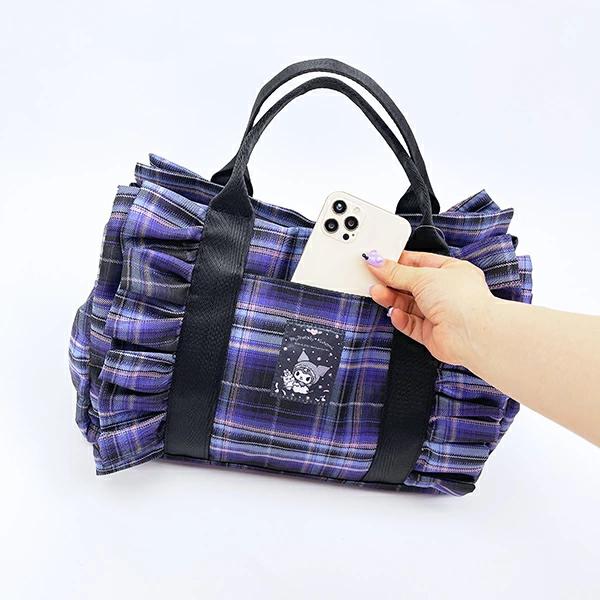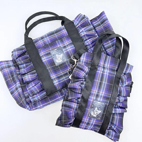 フリルがとてもキュート♪なクロミのトートバッグです☆彡 マチ付きなので飲み物や大きめなポーチも入れていただます♪ 普段使いはもちろん、通勤・通学にもおススメです♪ショルダー紐も付いていて便利!