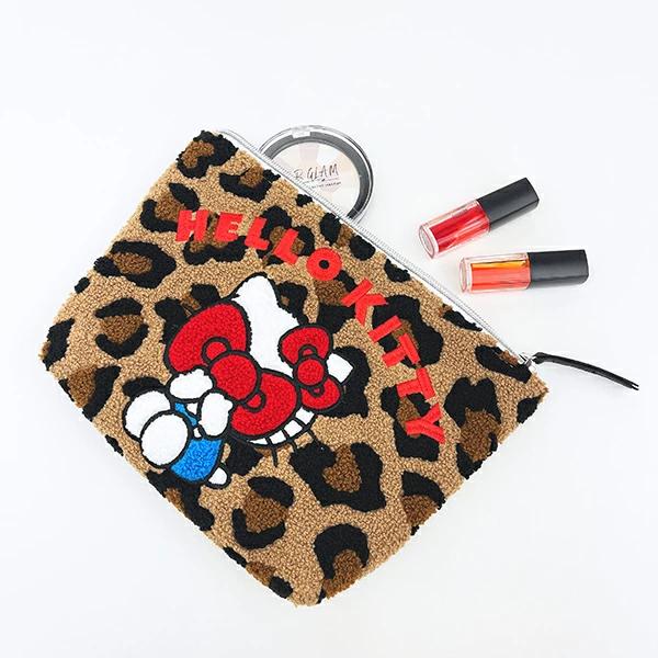 ハローキティ×レオパード柄がとってもキュートなさがらポーチです。メイク用品や小物を入れるのにぴったり☆もこもことしたさがら刺繍を全面に使用した可愛いポーチです☆彡