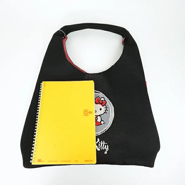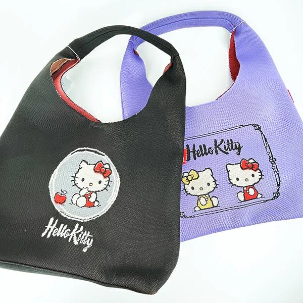 可愛いハローキティのニットトートバッグです。ワンハンドルの持ち手が肩掛けしやすい☆適度なハリがあり、型崩れしにくいニット素材がgood!大きく開く口元で便利に出し入れが可能◎A4サイズも収納OK!背面のポケット付きが嬉しいポイントです♪