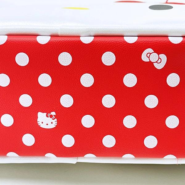 キティちゃんのフェイスデザインのペンポーチです!側面は派手なドット柄。ドット以外にリボンやキティちゃんが隠れていてとってもキュート♪しっかりした生地感でマチもあるので、メイクポーチとしても使っていただけます!チャックもリングで開けやすい◎