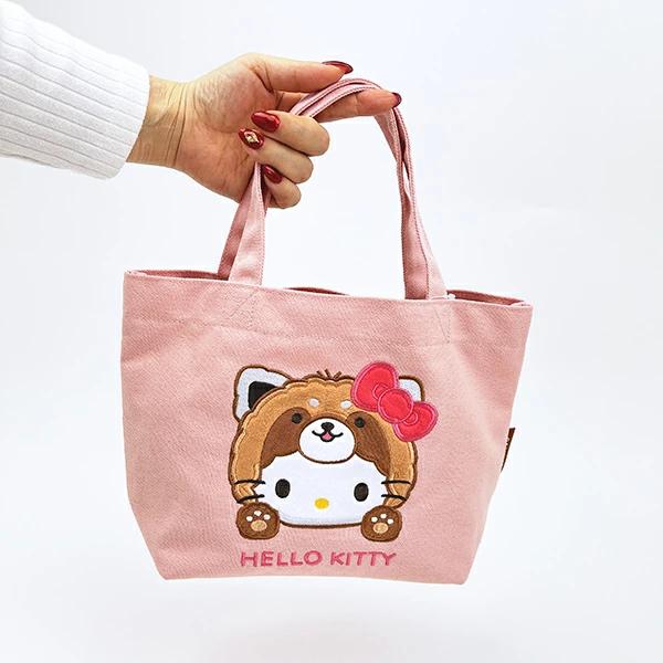 ハローキティのバンザイシリーズのミニトートバッグです。レッサーパンダの姿になってバンザーイしている姿が愛おしすぎる♪ランチにもぴったりなサイズ感が◎とっても可愛いシリーズなのでぜひ可愛いレッサーパンダキティグッズで揃えてみてください☆彡