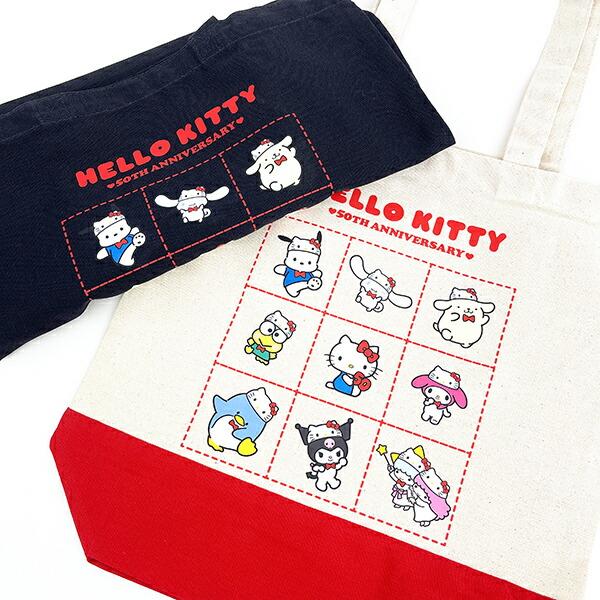 50周年を記念したハローキティのトートバッグです♪サブバッグ、メインバッグにも大活躍◎A4サイズの書類やノートを収納可能☆可愛いデザインなので色んな場所にお出かけしたいですね♪