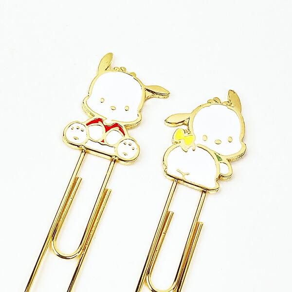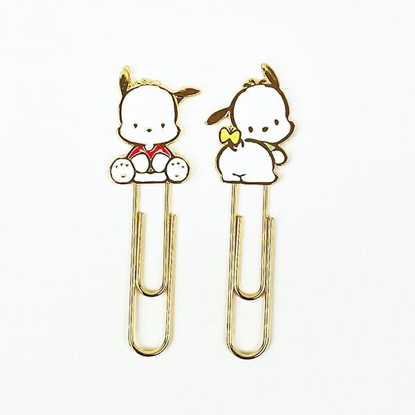 ゴールドメッキを使用した高級感のある金属製クリップです♪2個セットのため、同じ手帳の中で片方は良く見返すページに、もう片方は最新のページに挟んだり、片方は読みかけの本に、もう片方は書類をまとめるのに使用したりと、用途に応じて使い分けが可能◎座っているポチャッコとお尻をこちらに向けたポチャッコがセットになった、可愛いデザイン!書類等に挟めばポチャッコ達がそこにいるように見えるよ♪