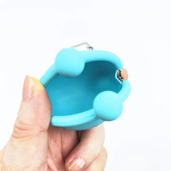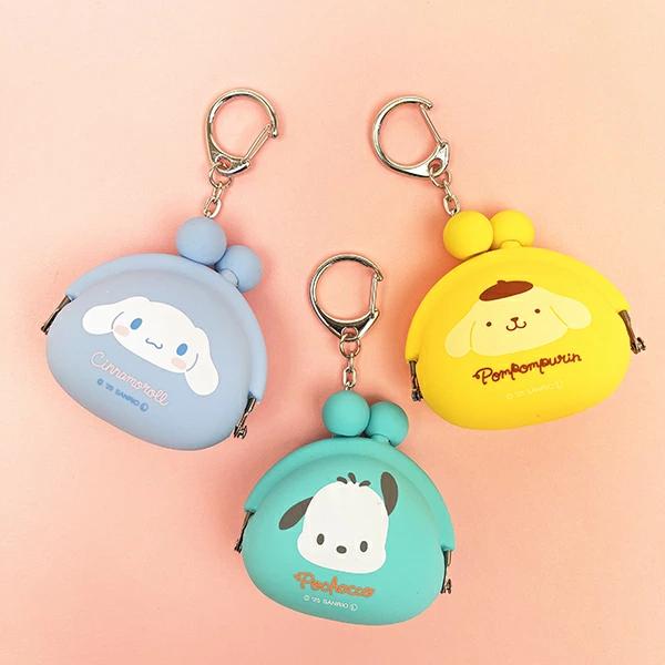 ポチャッコのキーリング付きの小さいシリコンがまぐちポーチ(ポチベビーシリーズ)♪小銭やおやつを入れて、バッグや鍵につけて一緒におでかけするのも◎目印アクセサリーにして自分の身の回りのアイテムをカスタムしちゃいましょう☆