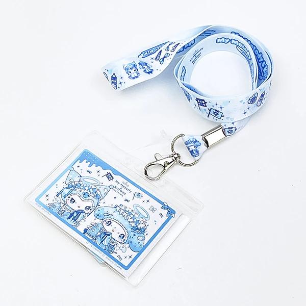 スポーティーとガーリーがミックスされたコーデがカワイイ、ドーリーミックスです。ブルーでぴえんな表情がメロい♪カードを入れる部分の台紙もカワイイ!ストラップも幅広なので首に負担もかかりにくい♪