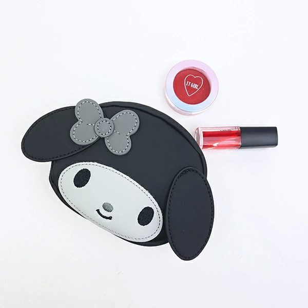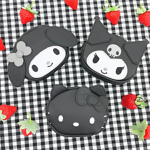 マイメロディのフェイスポーチです。コスメや小物の収納にぴったり♪小銭入れとしても◎マットな質感がカッコよくおしゃれ♪モノトーンでいつもと違う表情が楽しめちゃいます☆彡