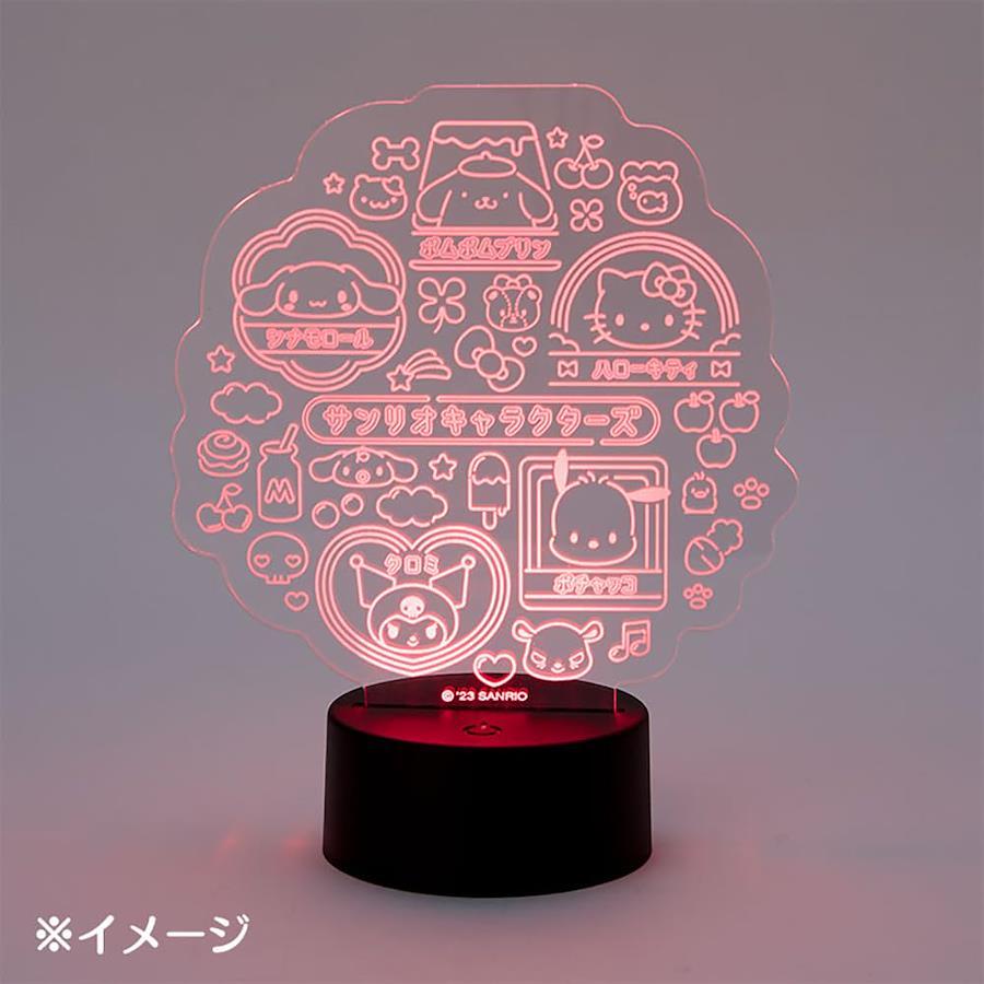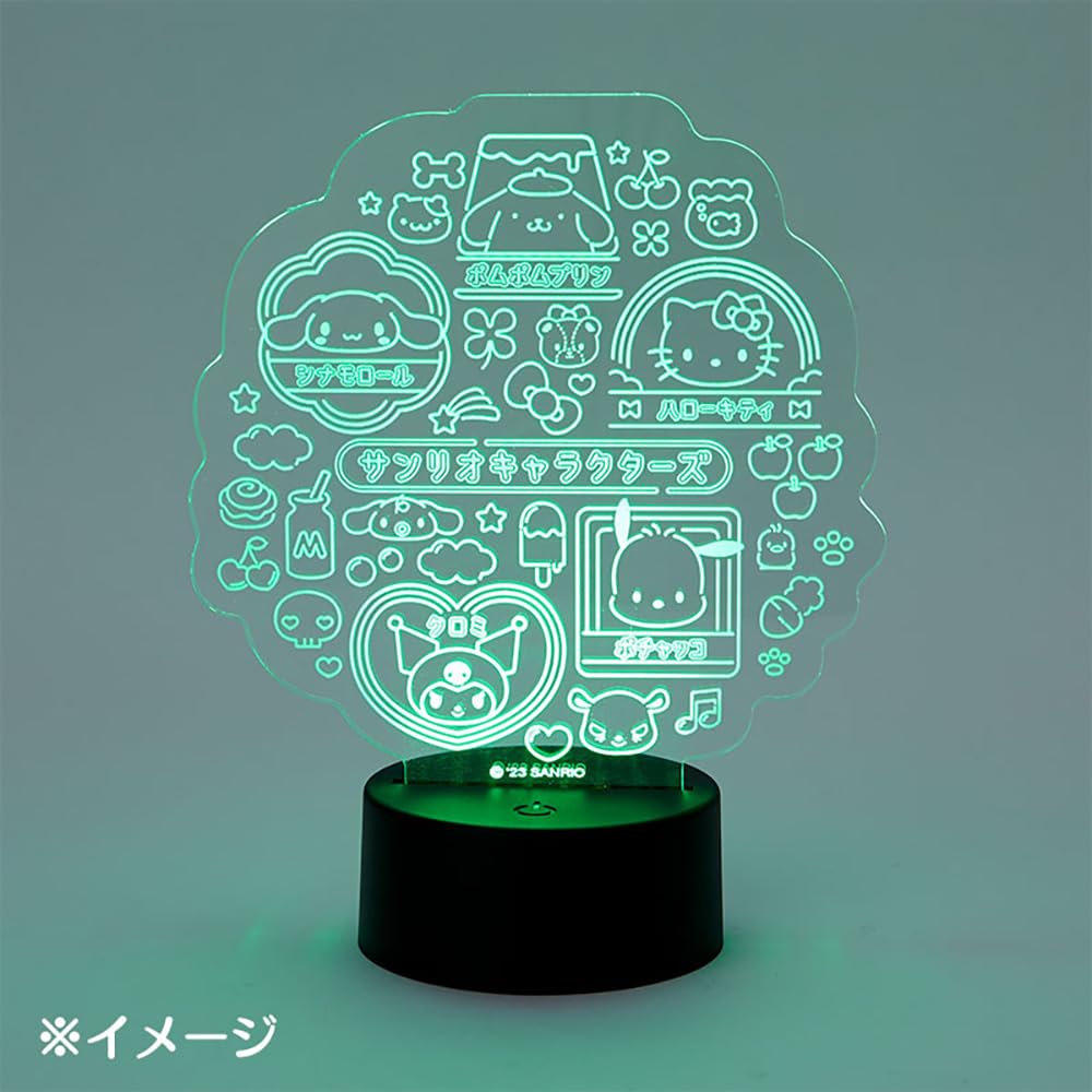 鮮やかカラーでお目立ちサンリオビビッドネオンデザインシリーズ。ネオン看板風のキャラクターやかわいいモチーフがぎっしり詰まって楽しい。7色に光るライトがカラフルに彩る。