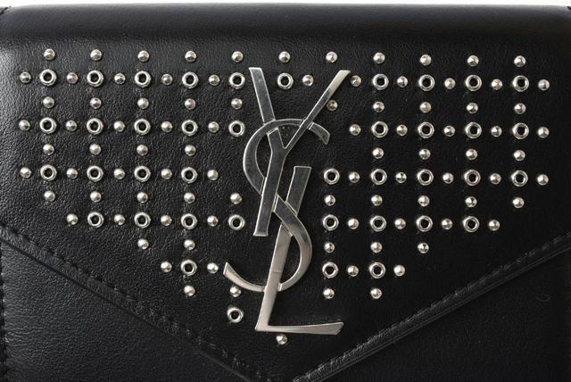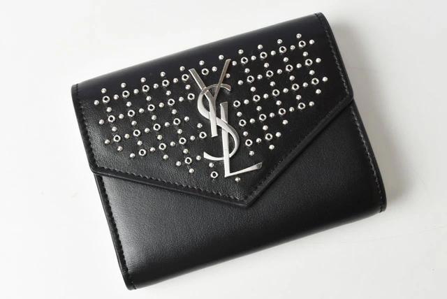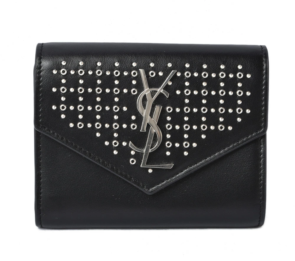 SAINT LAURENT 3つ折り財布 モノグラム・サンローラン スタッズ ブラック