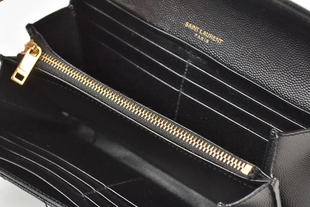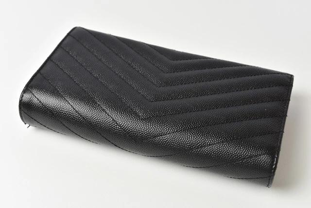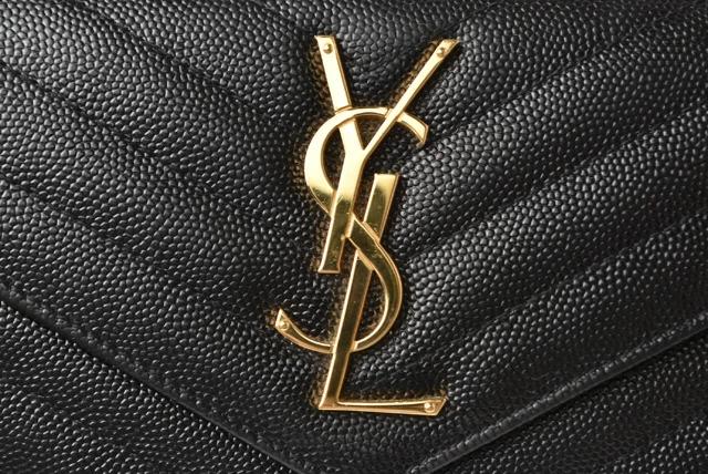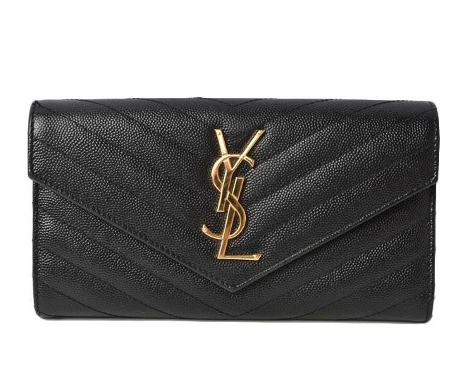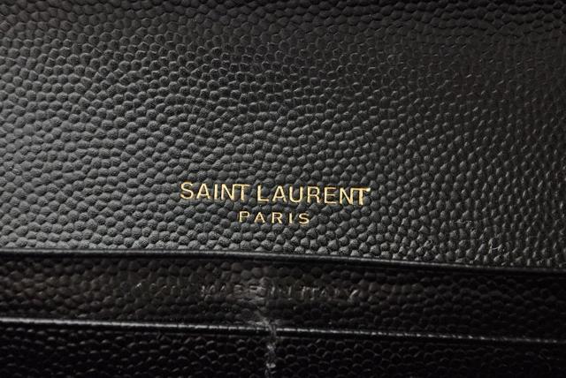 サンローランより、スナップ式の長財布です。傷、汚れの目立ちにくい型押しレザー素材です。センターには、YSLのロゴがデザインされており存在感があります。収納力があり、使いやすい長財布です。内側は、ポケットが充実しており、機能的です!カードポケットが12枚もあり、多くなりがちなカードをすっきり収納できます。