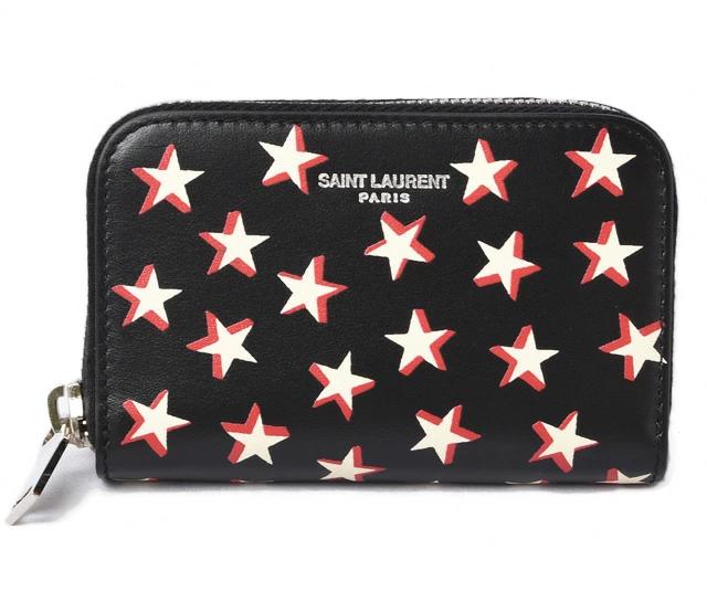 SAINT LAURENT 小銭入れ スター レザー ブラック/レッド 506522