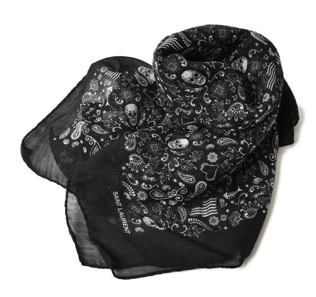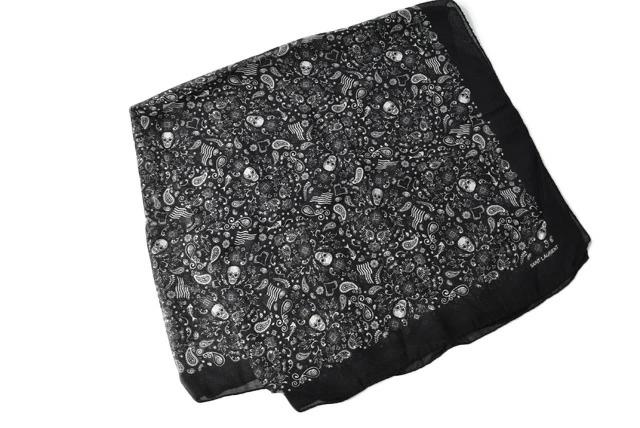 SAINT LAURENT ショール スクエアスカーフ スカルモチーフ ブラック 551672