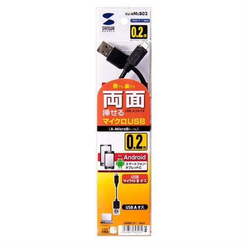 コネクタの向きを気にせず挿せるマイクロUSBケーブル。0.2m・ブラック。