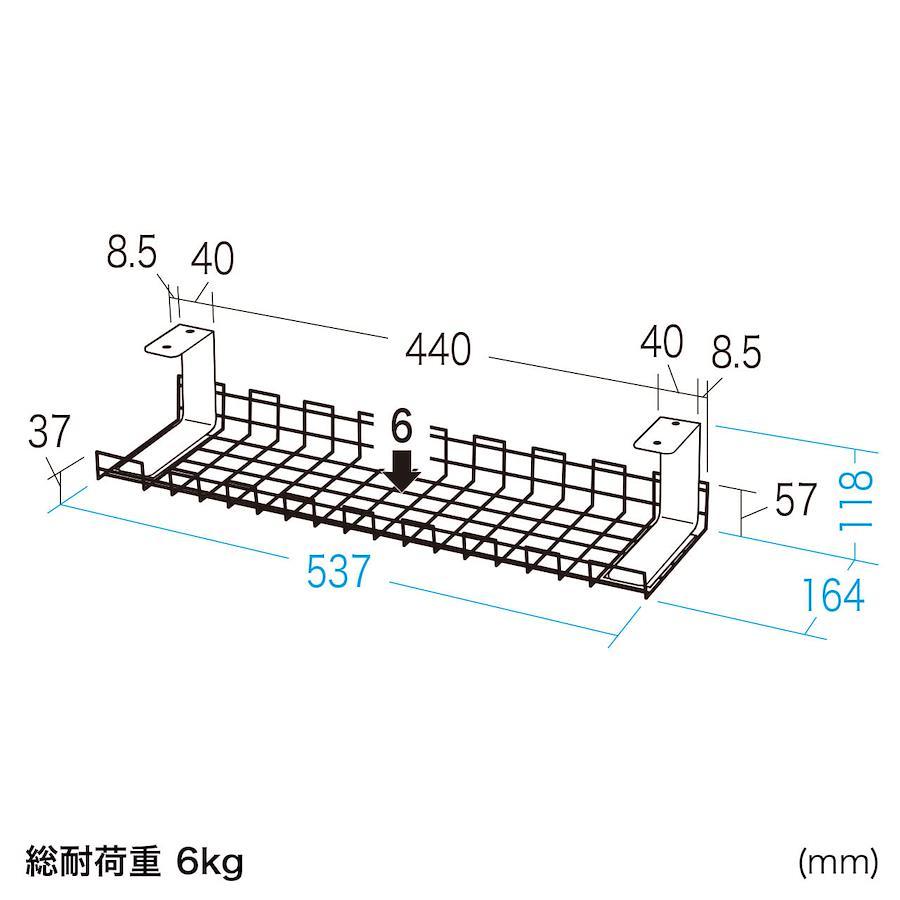 ●上下昇降デスクERD-Mシリーズ、ERD-Eシリーズ、ERD-TWシリーズ、ERD-SHシリーズ専用のケーブル配線トレーです。●スチールワイヤー製で、幅537mmと小さなサイズです。 ●デスク背面に取り付けてキレイにタップやケーブルの配線ができます。 ●専用金具でデスクに取り付けます。■サイズ:W537×D164×H118mm ■重量:1.36kg ■梱包:1個口/597×193×72mm・1.76kg ■出荷形態:ノックダウン組立式 ■材質:スチール ■付属品:金具×2個
