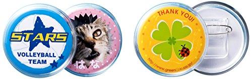 オリジナルバッジが作れる、楽しい手作りキット。クリップとピンつきで、色んなところにつけられます。●専用紙(印画紙タイプ)に好きな写真やイラストを印刷して、バッジパーツ(透明ケース)にはめこむだけで、簡単にオリジナルバッジが作れます。●このキットで丸型の大きめバッジが4個作れます。●キャップや洋服、小物、バッグにつけるとワンポイントになります。お名前シール代わりにも使えます。●クラブやサークル、お友達同士でおそろいのバッジにしたり、会社や店舗のノベルティグッズとしてもおすすめです。●専用紙は写真印画紙タイプで、染料・顔料インクジェットプリンターに対応しています。にじみが少なく美しい発色で、仕上がりもキレイです。●専用紙は、丸型のミシン目が入っています。