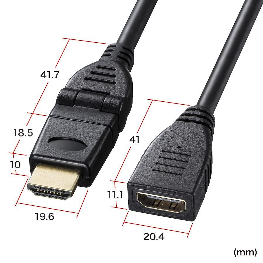 HDMIケーブルの長さを少し伸ばしたい時や、差し込みにくいHDMI端子(メス)を手元で作業できるようにしたい時、また、HDMI機器の端子を保護したい時などに便利なHDMI延長ケーブルです。