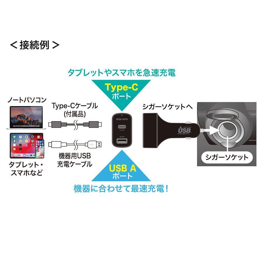 USB PD(Power Delivery)規格に対応したUSB Type-Cポートと、従来のUSB Aポートを搭載したカーチャージャー