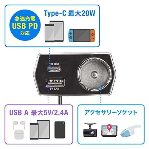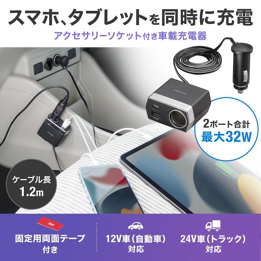 USB Power Delivery規格に対応したUSB Type-CポートとUSB Aポート、アクセサリソケットを搭載したカーチャージャーです。